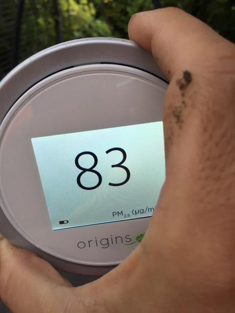 Abb.: Beweisphoto unseres Feinstaubmessgerätes von 7 Uhr heute Morgen im Westen Deutschlands.