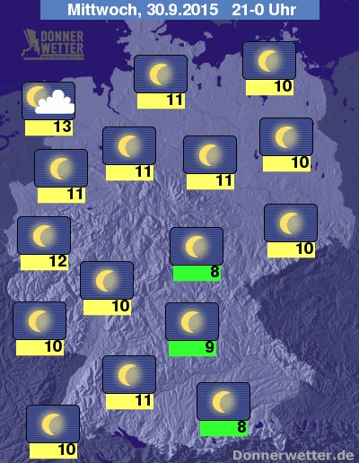In der Nacht zum Donnerstag bleibt der Himmel über dem Land sternenklar, dazu bleibt es trocken. Die Tiefstwerte liegen bei 10 Grad an der Nordseeküste und um 3 Grad in München.