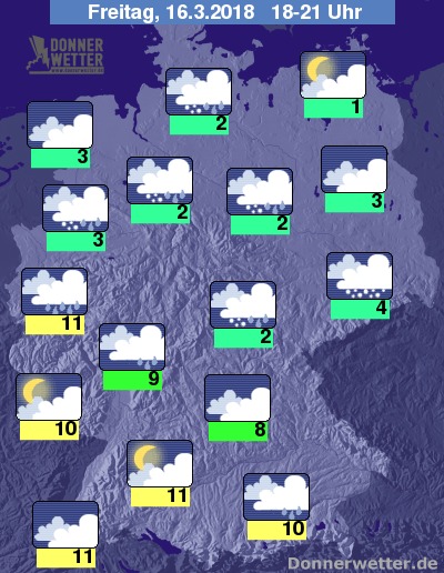 Bis zum Abend ändert sich an dieser Aufteilung kaum etwas. Die Sonne zeigt sich höchstens an der Ostsee und im Südwesten noch einmal für kurze Zeit.