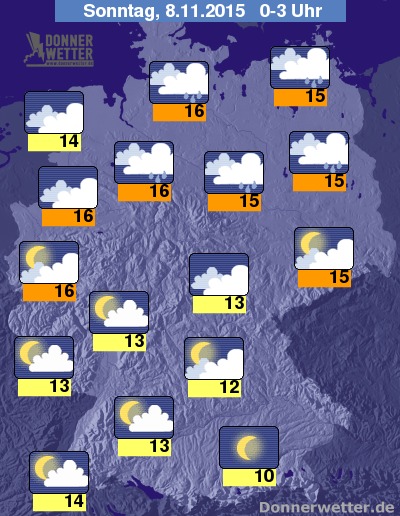 Die Temperaturen sinken auf Werte um 16 Grad C entlang der Oder und um 11 Grad C am Alpenrand.