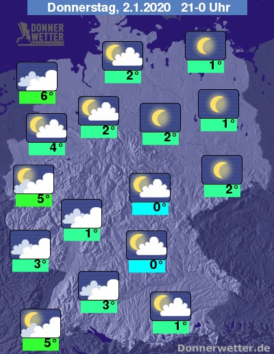 Am Abend bleibt es im Südwesten und Westen wechselnd bis stärker bewölkt, aber meistens trocken. Sonst kann man häufig Halbmond und Sterne beobachten.