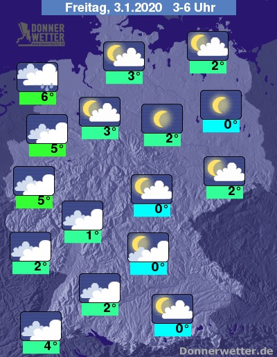 Der lebhafte Wind hält die Temperaturen meistens im positiven Bereich. Lediglich in windgeschützten Tälern, sowie an den Alpen muss mit leichtem Frost gerechnet werden.
