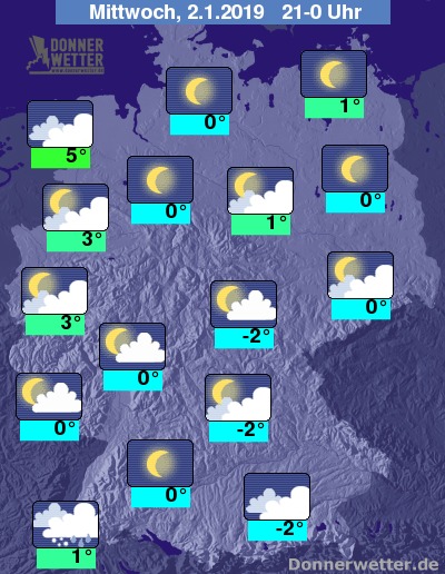 Bis zu den Frühstunden kühlt sich die Luft auf -5 bis 0 Grad ab. Frostfrei bleibt es wahrscheinlich nur in den Ballungsgebieten des Westens, sowie im Küstenbereich von Nord- und Ostsee.