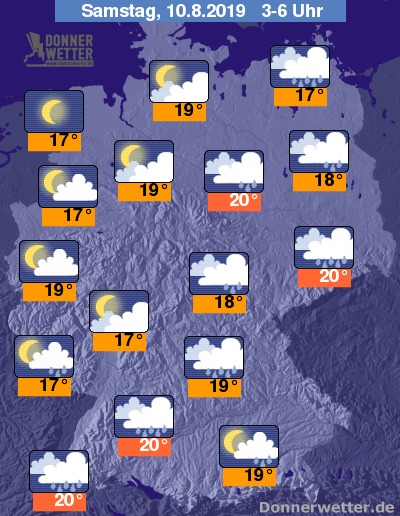 In der kommenden Nacht ist der Himmel meist aufgelockert oder stark bewölkt. Schauer und teils starker Regen fällt verhäuft im Osten und Süden. Im Emsland kann es auch zeitweise aufklaren. Die Temperaturen fallen auf 17 Grad im Ostfriesland und 20 Grad im Schwarzwald.
