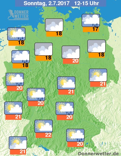 Heute Nachmittag halten sich im Norden meist dichte Wolken, die hier einzelne Schauer bringen können. Im übrigen Bundesgebiet ist es meist aufgelockert bis stark, im Süden oft nur leicht bewölkt, dazu bilden sich gebietsweise Schauer. Die Temperatur liegt bei 17 Grad in Rostock und etwa 22 Grad in Karlsruhe.