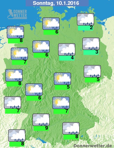 Heute ziehen verbreitet dichte Wolken durch, dabei ist es im Osten und Nordosten anfangs noch trocken, sonst fällt immer wieder, zum Teil auch langanhaltender Regen. Von Südwesten her lockert der Himmel aber bereits am Vormittag wieder auf und bis zum Abend klingt auch der Regen im Norden und Osten Deutschlands überwiegend ab. Im äußeren Süden bleibt es allerdings bei meist dichten Wolken und es fällt auch bis zum Abend zeitweise Regen. Die Temperatur steigt auf 2 Grad an der Müritz und bis 9 Grad in Stuttgart. Im Küstenumfeld weht ein teils starker Wind.