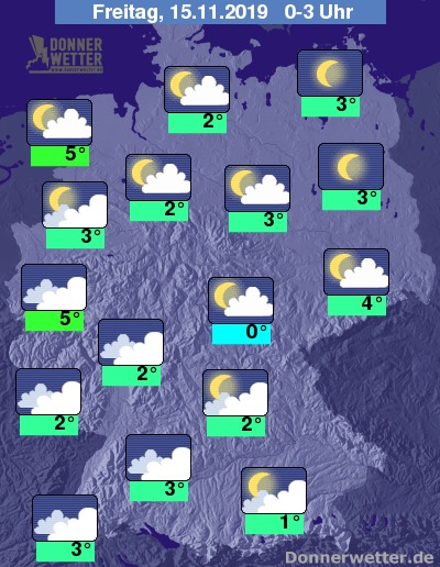 In der Nacht ist der Himmel über der Westhälfte des Landes dicht bewölkt oder bedeckt; in der Osthälfte ist es teils locker bewölkt, an der Oder klart der Himmel auch regional auf. Schauer sind in der Nacht nicht zu erwarten.