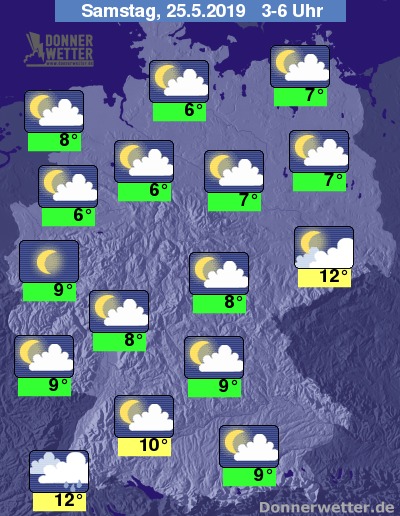 In der Nacht zeigt sich der Himmel über weiten Landesteilen locker bewölkt. Dichtere Wolken können sich vorwiegend zunächst noch an der Nordseeküste und im Südosten halten. Am Hochrhein können in der Nacht einzelne Schauer fallen, sonst bleibt es meist trocken.