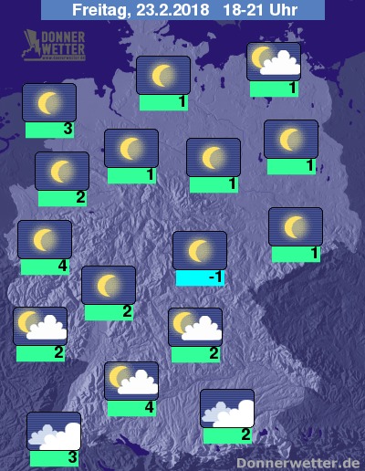 Durch den stärker werdenden Einfluss sibirischer Luftmassen und einen teils kräftigen Ostwind steigen die Temperaturen im Tagesverlauf nur leicht an. Die Höchstwerte liegen am Nachmittag entsprechend zwischen -1 Grad in Teilen Thüringens und +4 Grad an Rhein und Donau.