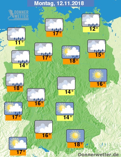 Zum Start in die neue Woche zeigt sich das Wetter im Norden und Westen überwiegend stark bewölkt, dabei fällt hier zeitweise Regen. Dagegen bleibt es über der Südosthälfte Deutschlands bei teils heiterem bis sonnigem, teils aufgelockerten bis stark bewölktem Himmel weitgehend trocken. Die Temperatur erreicht 11 Grad an der Nordsee und bis 18 Grad im Raum München.