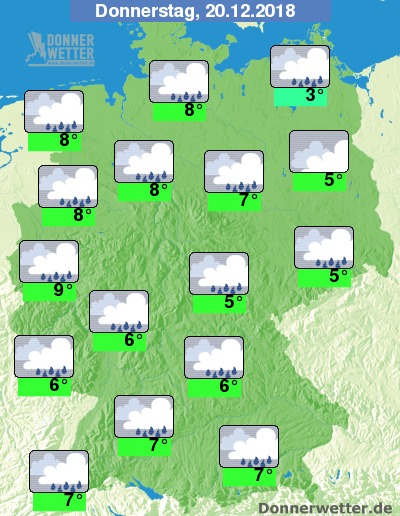 Im gesamten Land dominieren die Wolken und sorgen zeit- und gebietsweise für Regen oder Sprühregen. In den Hochlagen des Erzgebirges, dem Bayrischen-Wald, sowie in den Alpen kann es zum Teil auch noch schneien. Aufhellungen bleiben die Ausnahme.