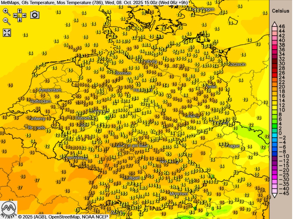Am Mittwochnachmittag zeigt sich der Himmel über weiten Landesteilen stark bewölkt oder es ist bedeckt, im Süden und Südwesten kann es am Nachmittag zeit- und gebietsweise auch mal auflockern. Vor allem im Norden und Osten fällt am Mittwoch etwas Regen oder Sprühregen.