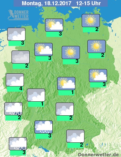 Heute Nachmittag fällt im Südwesten bei dichter Bewölkung noch weiterhin Regen, Schneeregen oder Schnee. Über der Nordosthälfte Deutschlands scheint hingegen verbreitet die Sonne bei oft wolkenlosem und sonst meist nur locker bewölktem Himmel, dazu bleibt es trocken. Im übrigen Bundesgebiet ist es teils stark, teils aufgelockert bewölkt und weitgehend trocken. Die Temperatur liegt bei 1 bis 4 Grad.