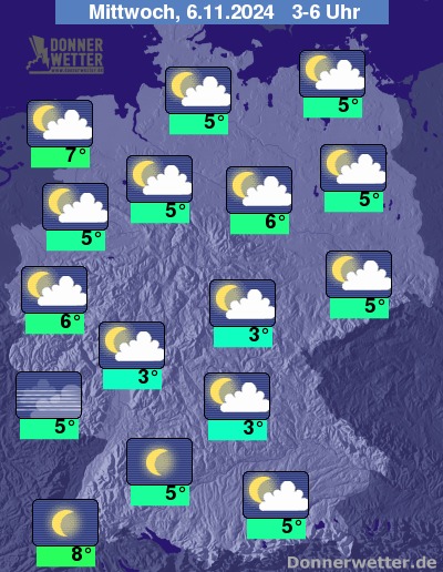 In der Nacht zum Mittwoch ist es sternenklar oder nur gering bewölkt und es bleibt niederschlagsfrei. In den frühen Morgenstunden kann sich dann erneut verbreitet Nebel oder Hochnebel bilden,