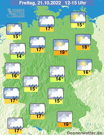 Heute Abend lässt der Regen über Deutschland immer mehr nach, vor allem im Norden, Osten und im Südwesten fällt jedoch noch vielerorts Regen. Bis auf seltene Auflockerungen, vor allem am Niederrhein bleibt es verbreitet bei dichten Wolken. Die Temperatur liegt bei 13 Grad in Jena und 18 Grad in München.