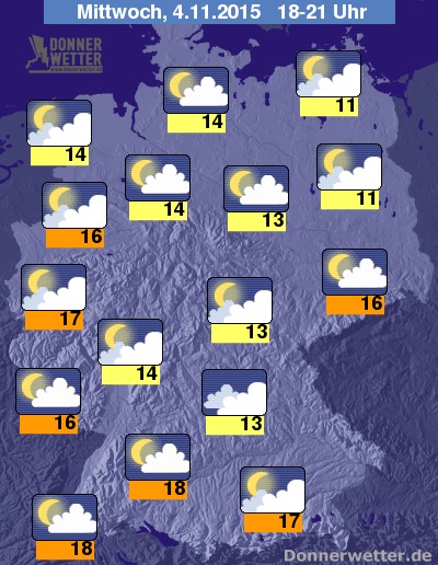 Werte um 18 bis 11 Grad C am Mittwochabend.
