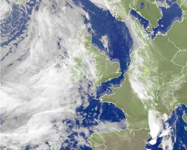 Auf dem Satellitenbild von heute Vormittag zeigen sich im Westen und Nordwesten schon Regenwolken einer Wetterfront. Über dem Mittelmeerraum sind Gewitterwolken zu sehen. Auf dem Atlantik macht sich ein weiteres Tief von Westen her auf den Weg.