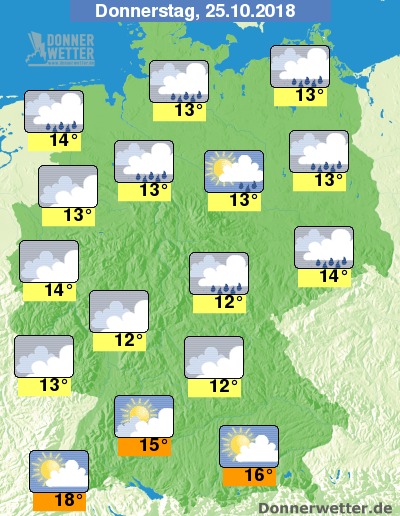 Über den Norden und die Mitte ziehen dichtere Wolken hinweg, die nur wenig Sonnenstrahlen hindurch lassen. Vor allem nördlich der Mittelgebirge, sowie im Osten fällt gelegentlich Regen, oder es muss mit örtlichen Schauern gerechnet werden. Im Süden bekommt die Sonne häufiger die Chance sich in Szene zu setzen.