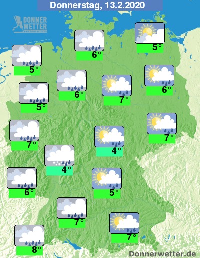 Heute können sich vor allem in der Osthälfte Sonne und Wolken noch länger abwechseln, in der Westhälfte Deutschlands ist der Himmel dagegen überwiegend bedeckt. Von Westen her ziehen im Tagesverlauf zudem immer wieder Regengebiete durch, die sich bis zum Abend auch in den Süden und Nordosten ausweiten. Die Niederschläge fallen dabei meist als Regen. Der Wind weht meist nur schwach bis mäßig, im Westen teils auch frisch mit einzelnen stürmischen Böen. Auf den Gipfeln sind auch Sturmböen möglich.