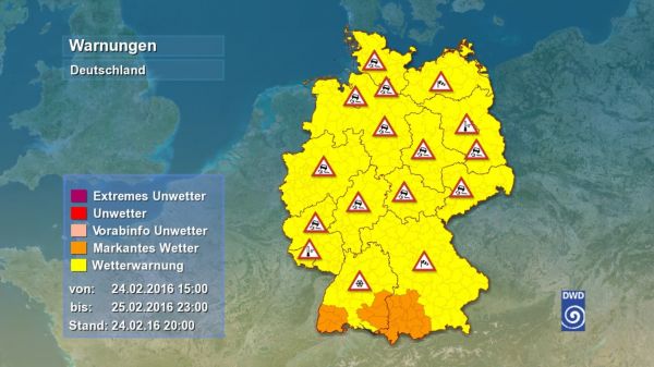 Hier die aktuelle Warnkarte mit der Warnung vor Schnee im Süden Deutschlands.