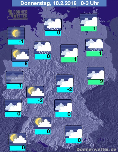 Die Südhälfte Deutschlands ist in der Nacht auf Donnerstag bedeckt. In den Regionen vond er Ostsee bis zum Erzgebirge ist weiterhin in der Nacht Schneefall angesagt. In Berlin nimmt der Schneeregen lässt der Schneefall nur wenig nach.
