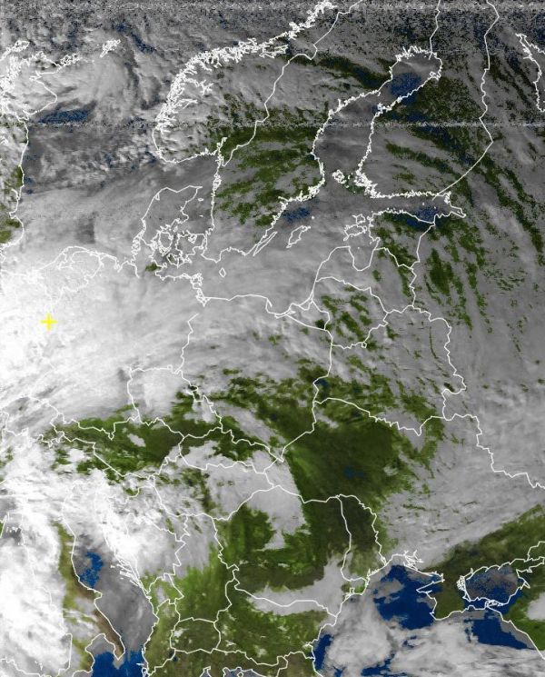 Auf dem Satellitenbild von heute Mittag zeigen sich weite Teile Mitteleuropas unter dichten Wolken. Auch Deutschland ist mit Ausnahme des äußeren Südosten unter einer dicken Wolkendecke. Ausläufer des Tiefs "Marita" über Skandinavien bringen verbreitet nasses und ebenfalls sehr windiges Wetter.