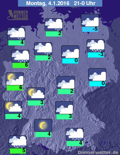 Heute Abend bleibt die Wolkendecke über der Nordosthälfte verschlossen und es fällt immer wieder Regen, Schneeregen oder Schnee, gebietsweise ist auch gefrierender Regen möglich, es besteht erhebliche Glättegefahr! Im Süden und Westen ist es oft locker bis aufgelockert, teils aber auch stark bewölkt, am Alpenrand ist etwas Regen oder Schneeregen möglich, sonst bleibt es meist trocken. Die Abendtemperatur liegt bei 6 Grad im Münsterland und um -5 Grad an der Müritz. An den deutschen Küsten weht teils starker Wind.