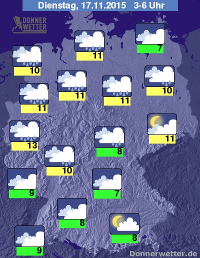 Die Temperaturen liegen bei Werten um 13 Grad C im Rheinland und 7 Grad C an der Ostseeküste.