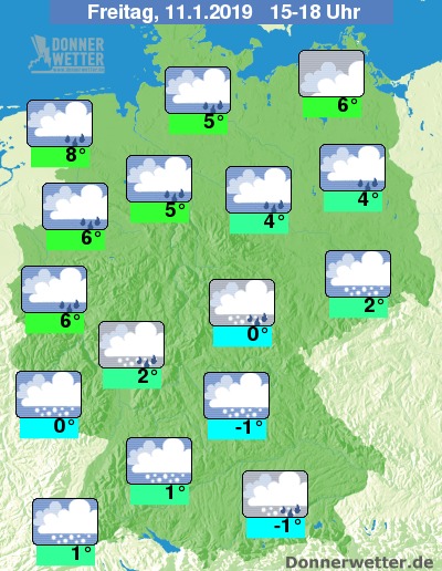 Die Temperaturen liegen in der Südosthälfte in Gefrierpunktnähe, während sie nach Nordwesten hin bereits auf mildere 3 bis 7 Grad klettern.
