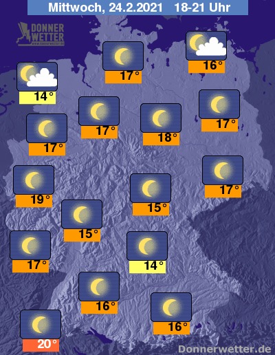 Heute Abend funkeln im gesamten Bundesgebiet die Sterne von einem wolkenlosen Himmel. Lediglich im Nordseeumfeld können wenige Wolken durchziehen. Es bleibt landesweit trocken bei sehr milden Werten von 14 Grad in Cuxhaven und bis zu 20 Grad in Freiburg.