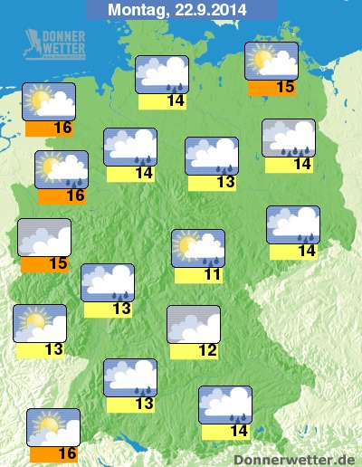 Der heutige Start in die neue Woche verheisst zunächst wenig Sonne. Zumeist ist es am Morgen trüb oder nass. Wir müssen verbreitet mit einzelnen Schauern, vor allem im Osten auch mit teils anhaltendem Regen rechnen. Freundlicher und trocken wird es etwa ab den Nachmittagsstunden im Nordwesten, hier setzt sich eine leichte Wetterbesserung durch, sonst sind jedoch weiterhin einzelne Schauer mit dabei. Die Temperatur steigt nur noch auf frische 11 Grad am Thüringer Schiefergebirge und auf 16 Grad entlang der Ems.