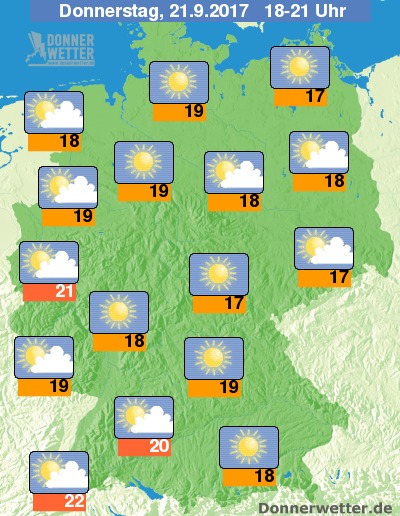In der Nacht kühlt es dann bei meist klarem Himmel jedoch wieder deutlich ab. Bei etwas dichterer Bewölkung in Nordseenähe fallen die Temperaturen auf Werte um die 12 Grad, während es am Alpenrand noch etwa 5 Grad kälter wird. In Ostseenähe bildet sich in den Morgenstunden zudem lokal Nebel.