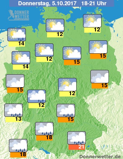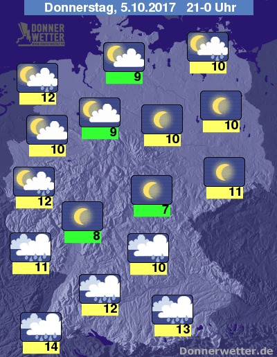 In den Abendstunden lockern die Wolken in der Nordhälfte immer weiter auf, einzelne Schauer beschränken sich dann meist nur noch auf das Nordseeumfeld. In der Südhälfte ist der Himmel dagegen dicht bewölkt oder bedeckt, südlich des Mains muss zudem immer wieder mit teils auch kräftigeren Schauern gerechnet werden.