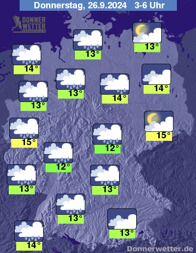 In der Nacht zum Donnerstag fällt vom Westen bis in den Nordosten vielerorts Regen, der vor allem im Westen, Südwesten und der Mitte auch ergiebig ausfallen kann. Überwiegend trocken bleibt es in der Nacht von Sachsen bis an den Alpenrand.