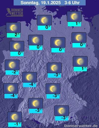 Die Temperaturen gehen in den frühen Morgenstunden zurück auf Werte um 2 Grad in Küstennähe und -4 Grad im Saarland.