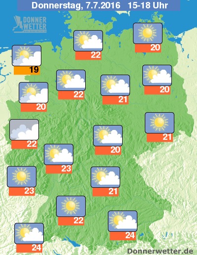 Höchstwerte um 24 Grad C am Donnerstagnachmittag.