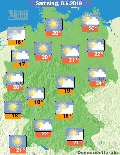 Heute bleibt es noch überwiegend heiter bis sonnig und trocken, im Norden und Westen sind allerdings im Tagesverlauf dichte Wolken und gebietsweise Schauer unterwegs. Die Temperatur steigt auf 16 Grad in Cuxhaven und bis 24 Grad in Dresden.