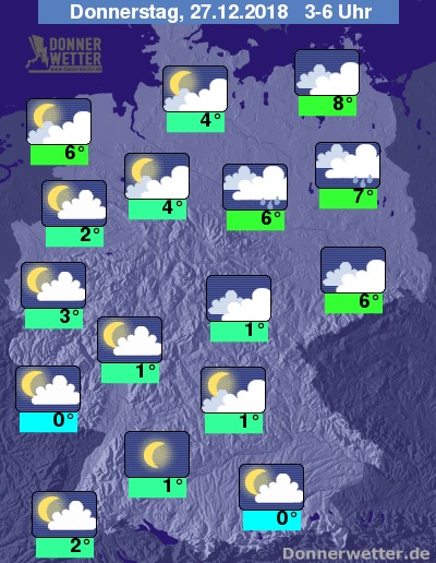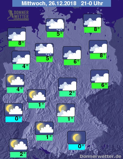Während der zweiten Nachthälfte klart es zum Teil auch im Nordwesten, sowie in Schleswig-Holstein auf. Vor allem in Brandenburg fällt aus dichten Wolken noch etwas Regen oder Sprühregen.