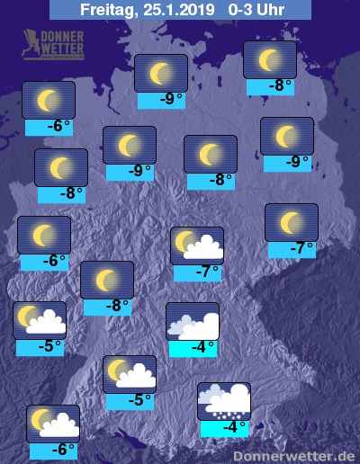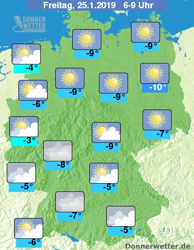 Tiefstwerte häufig im niedrigen einstelligen Minusbereich. So starten wir in den Freitag!