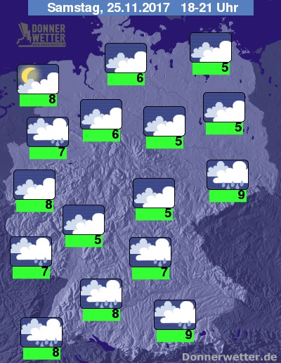 Heute Abend zieht sich der Regen in den Süden und auf Sachsen zurück, jedoch bleibt es auch sonst weitgehend wolkenverhangen, dazu allerdings meist trocken. Vom Mittel- bis Niederrhein ist jedoch gebietsweise etwas Regen möglich. Die Temperatur liegt bei kühlen 5 bis 9 Grad.