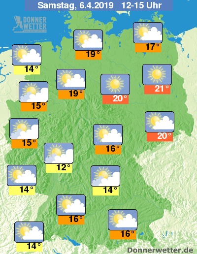 Heute Nachmittag ist es über dem Süden und Westen teils heiter, zum Teil ziehen hier auch mehr Wolken durch. Im übrigen Land ist es sogar überwiegend heiter bis sonnig, dabei bleibt es weitgehend trocken. Die Temperatur liegt bei 12 Grad am Westerwald und bis 21 Grad in Berlin.
