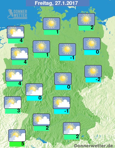 Dabei liegen die Höchstwerte bei frostigen -2 Grad in Dresden und vergleichsweise milden +5 Grad in Freiburg.