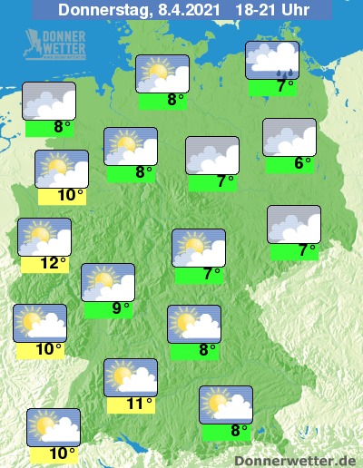 Heute Abend ist es im Süden meist heiter, teils wechselnd bewölkt, im übrigen Land ist es gebietsweise aufgelockert bewölkt, vor allem im Norden und Osten aber auch verbreitet stark bewölkt. An der Ostsee sind ein paar Tropfen möglich, im übrigen Land bleibt es trocken. An den Küsten weht ein starker bis stürmischer Wind. Die Temperatur liegt bei 6 Grad in Berlin und bis 12 Grad in Köln.