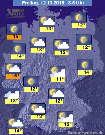 In der Nacht zeigt sich der Himmel vor allem entlang der Oder sowie regional in der Nordwesthälfte häufig sternenklar, in den übrigen Landesteilen überwiegt lockere oder aufgelockerte Bewölkung. Es bleibt meist trocken, einzelne Schauer sind im Nachtverlauf allein am Oberrhein möglich.