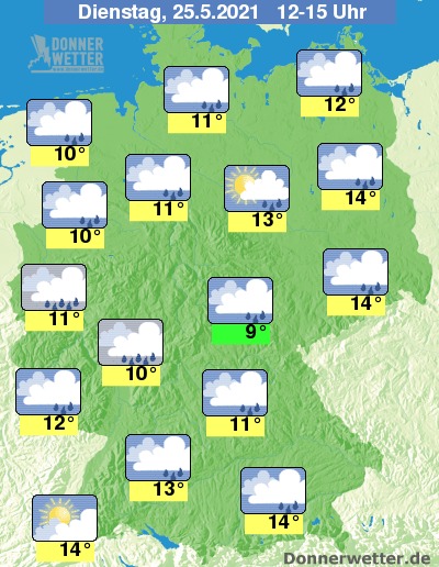 Heute Nachmittag ziehen überwiegend dichte Wolken durch, hier und da sind auch mal Auflockerungen möglich. Es bilden sich wiederholt, teils kräftige Schauer, zudem sind auch örtliche Gewitter möglich. Die Temperatur liegt bei 9 Grad im Grabfeld und bis 14 Grad am Oberrhein.