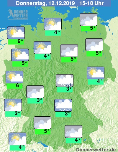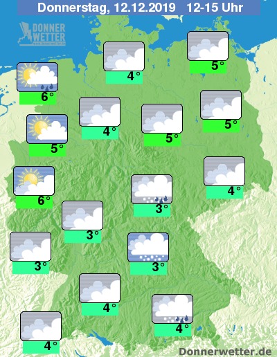 Die Temperaturen bewegen sich mit 2 und 6 Grad im mäßig kalten Dezemberbereich.