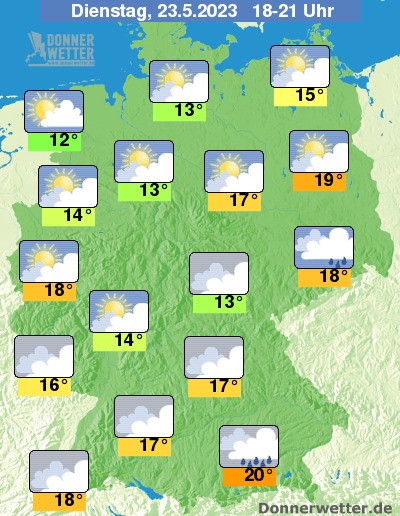 Heute Abend klingen die Schauer auch im Osten und Süden verbreitet ab, direkt an den Alpen bilden sich jedoch noch vermehrt Schauer. Im Nordwesten und im Verlauf auch im Norden und Westen lockert es immer weiter auf, dazu bleibt es trocken. Die Temperatur liegt bei 12 Grad an der Nordsee und bis 20 Grad in Berchtesgaden.