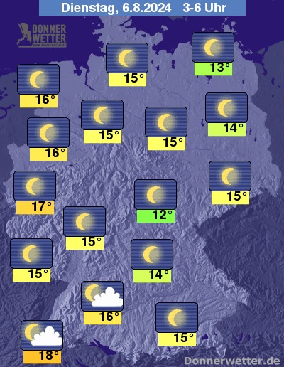 Die Temperaturen gehen in den frühen Morgenstunden zurück auf Werte um 18 bis 12 Grad.