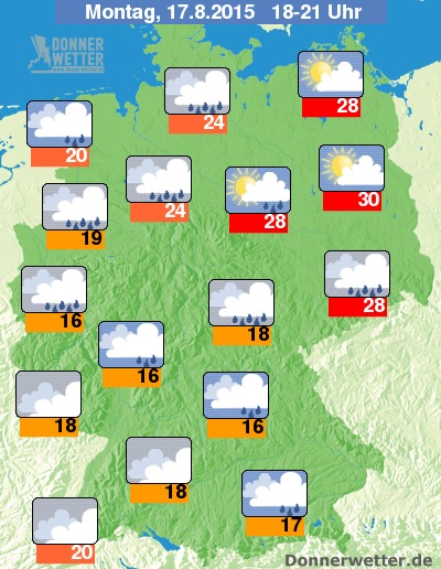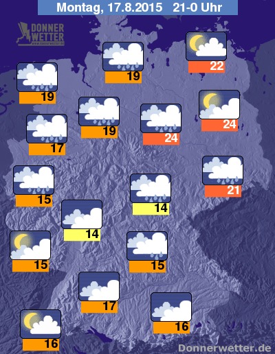 Am späten Abend ziehen die Schauerwolken rund um den Norden und Westen Deutschlands. Auch in Sachsen und in Thüringen werden wieder dauerhafte Regenfälle gemeldet. Im Süden nähe Oberbayern und Baden-Württemberg und im Nordosten an Berlin un der Ostseeküste wird die Abendstund von Wolken bedeckt sein.