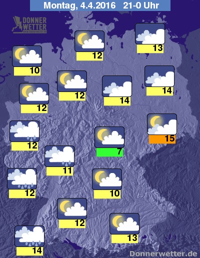 In der Nacht zum Dienstag ziehen dichte Wolken mit teils kräftigem Regen vom Südwesten über die Mitte des Landes hinweg und erreichen gegen Morgen auch Sachsen-Anhalt. Im übrigen Bundesgebiet ist es teils aufgelockert, teils aber auch stark bewölkt, dabei ist nur hier und da auch mal etwas Regen möglich. Die Temperatur sinkt auf 10 Grad in Düsseldorf und etwa 5 Grad am Thüringer Wald.